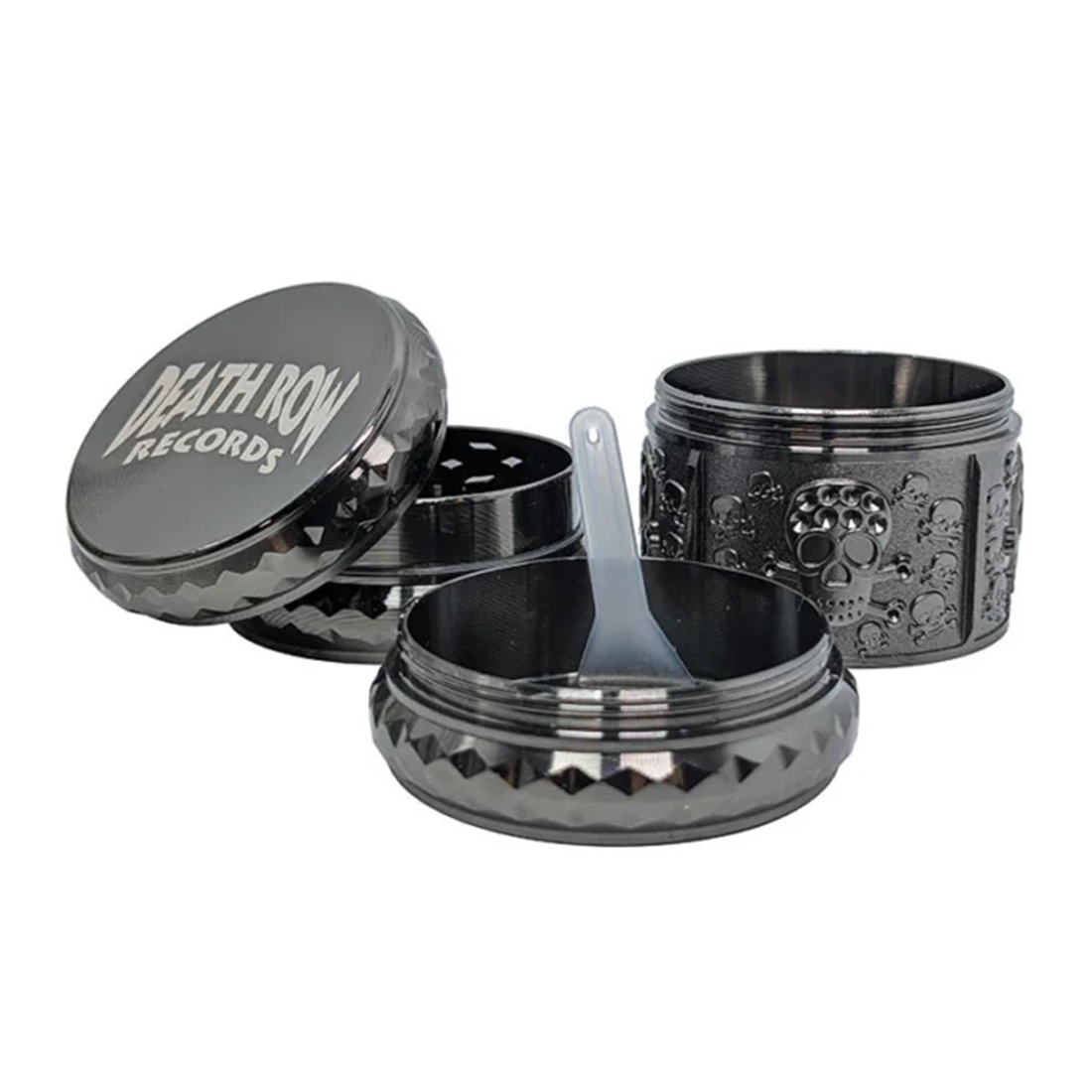 Grinder 'DEATH ROW RECORDS' Skull Metal/Black | 4-Parts - 44mm.