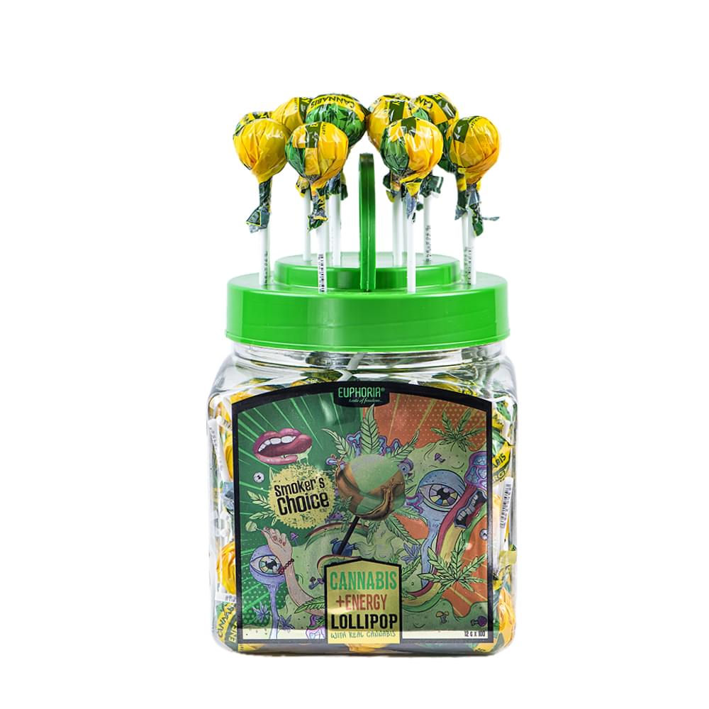 Enjoy energy and sweetness in a unique combination with EUPHORIA Energy lollipops. Each lollipop offers the subtle taste of hemp combined with an extra boost of energy thanks to caffeine and taurine, transforming the moment of snacking into an invigorating and fun experience. Ideal for those who want a quick boost with natural hemp flavor, without psychoactive effects.