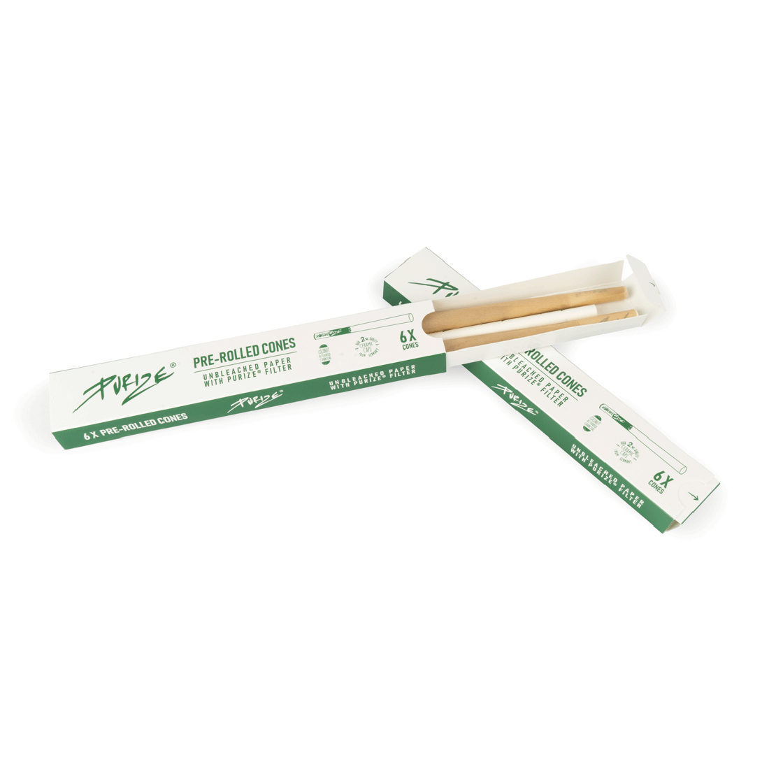 PURIZE® King Size Slim Pre-Rolled Cones with 6 papers per pack, vegan and organic.